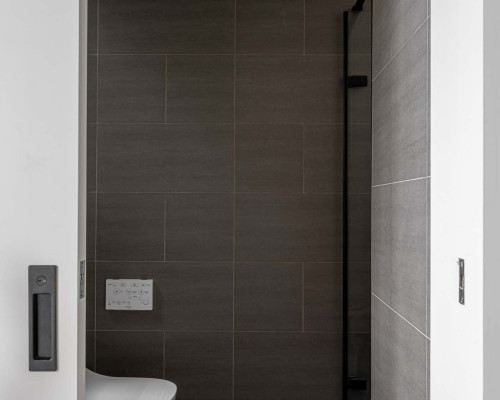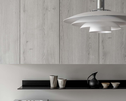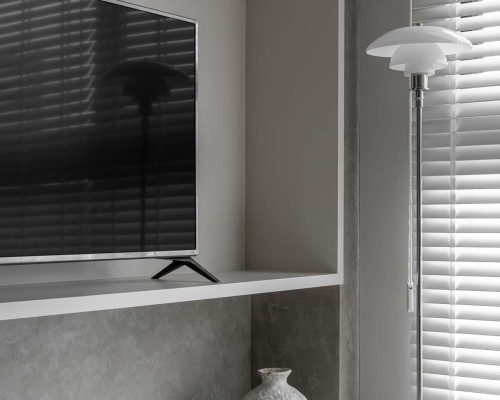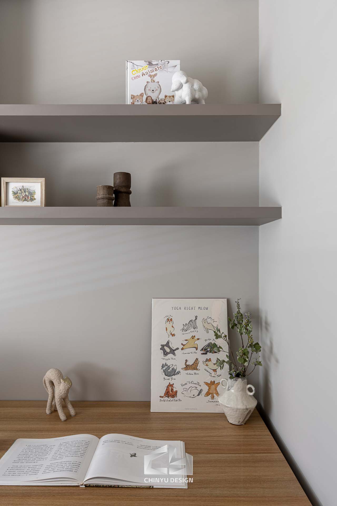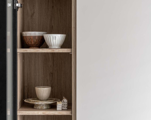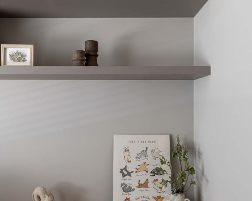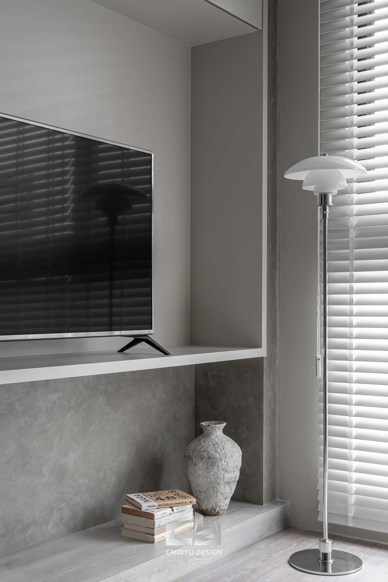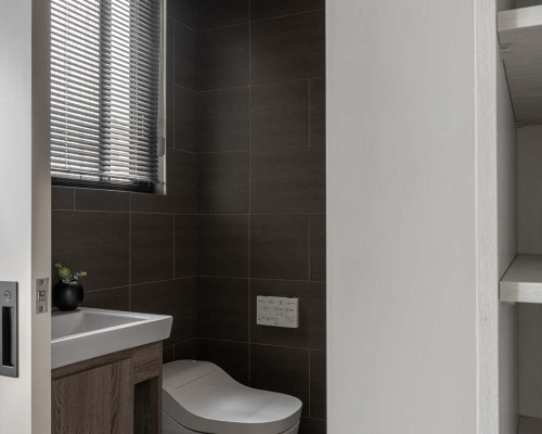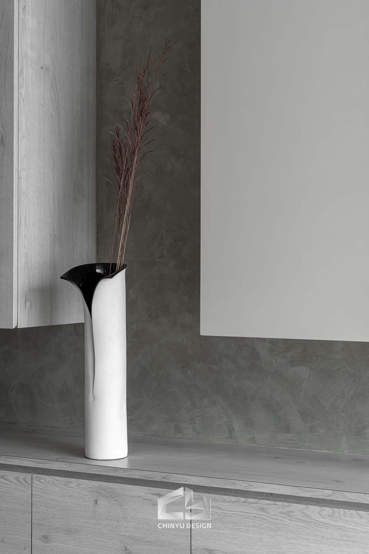以收納與展示為核心的住宅設計。屋主熱愛旅行,家中需要足夠空間收藏各地帶回的紀念品,因此我們在櫃體規劃中融入玻璃展示與懸浮結構,保持視覺輕盈的效果。